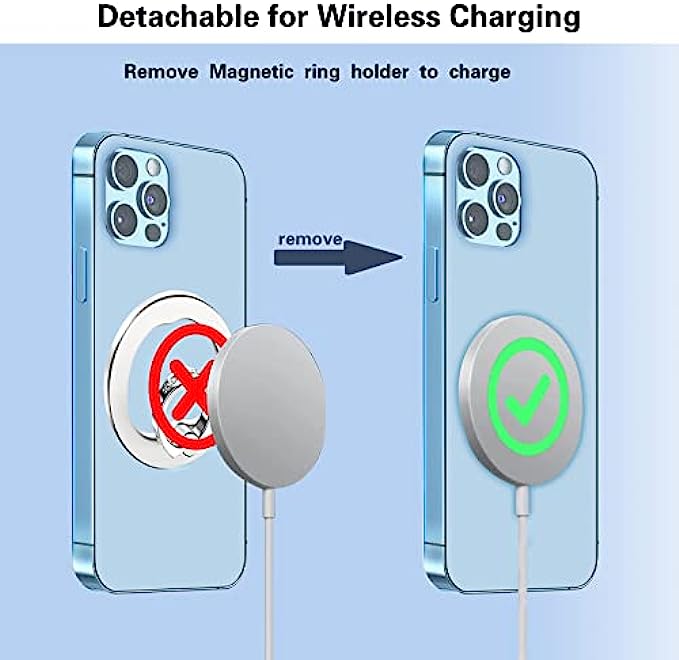 • ?【Detachable for Wireless Charging】For magsafe ring holder is removable, so you can remove the ring magnetic for phone while Wireless Charging. No need to remove the case, say goodbye to adhesive tapes and sticky residue.This is a detachable magnetic phone grip.