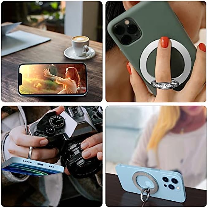 • ?【Two Ways of Use】For magsafe phone ring holder,it is designed for iPhone 13/12 series.For iPhone 13/12 series,move magnetic phone finger holder to the back of your compatible with MagSafe case.Auto-align in an instant! For other models phone,attach the metal ring (in the package) to the back of your phone case if you use case.Then stuck the finger phone ring on the metal ring, which is suitable for most smartphones.