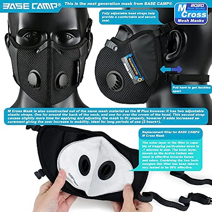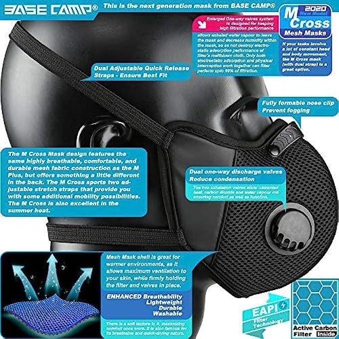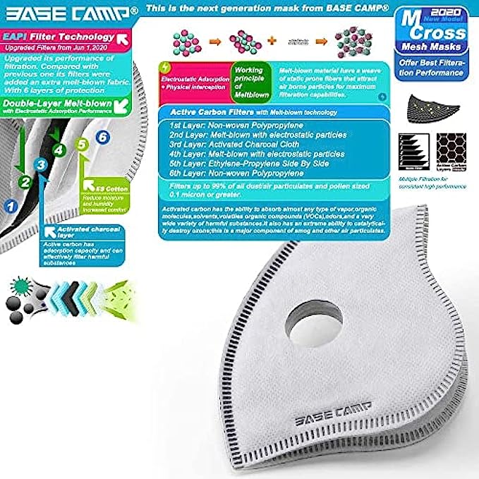 • 6-Layer Comprehensive Protection: BASE CAMP M Cross face mask is the fourth generation of BASE CAMP mask. Adopted EAPI filter technology and Advanced Nanotechnology, the filters are upgraded to be 6 layers, which can filter out up to 99.4% exhaust gas, pollen, dust, particles and smoke. etc. Provide reliable protection for daily use.