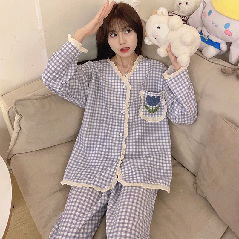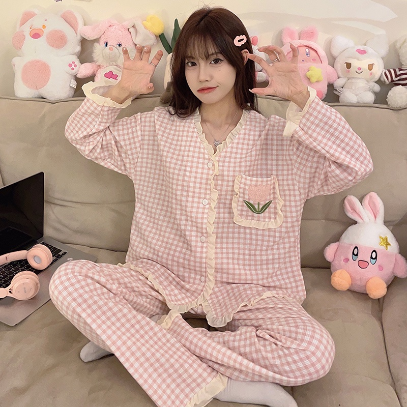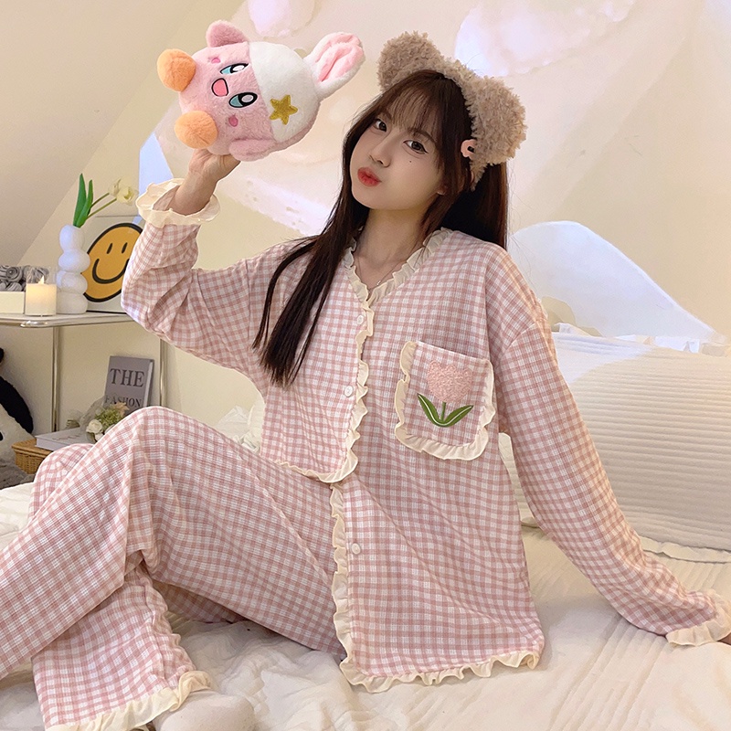https://shopv4.91demo.com/product/M-5XL-Plus-size-Sleepwear-Woman-Cotton-Pyjamas-Women-Long-sleeve-Pajamas-Set-Japanese-Loose-Grid-Cute-Loungewear