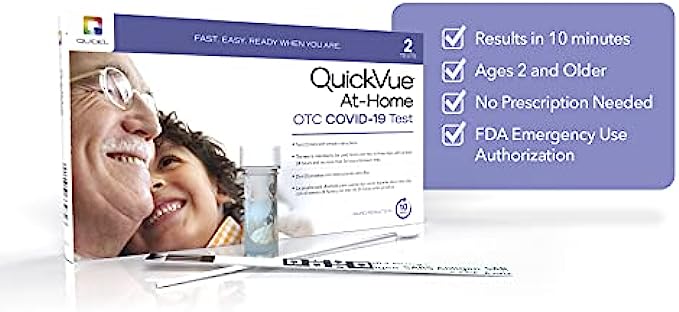 Quidel QuickVue at-Home OTC COVID-19 Test Kit, Self-Collected Nasal Swab Sample, 10 Minute Rapid Results - Single Kit (Includes 2 Tests, Intended for a Single User)