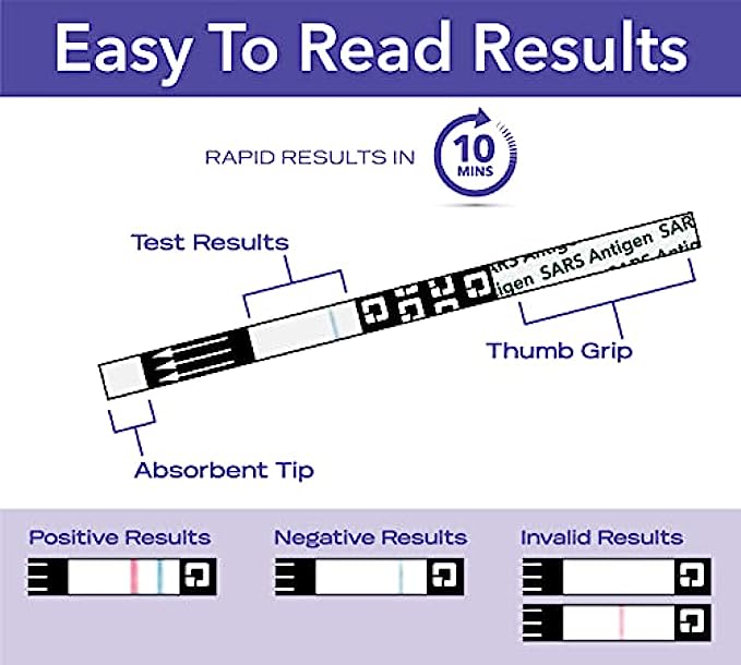 • Home COVID-19 test is quick, simple and designed for self-collected nasal swabs, ages 14 or older; Ages 2+ can be tested if adult collects sample; straightforward results with pink or blue line on test strip