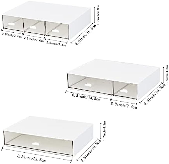 • PERFECT SIZE - 8.8*6.5*1.7inch/22.5*16.5*4.3cm, elegant look, it fits easily in the desk. clear drawers design easy to see through and keep everything in order and easy to access