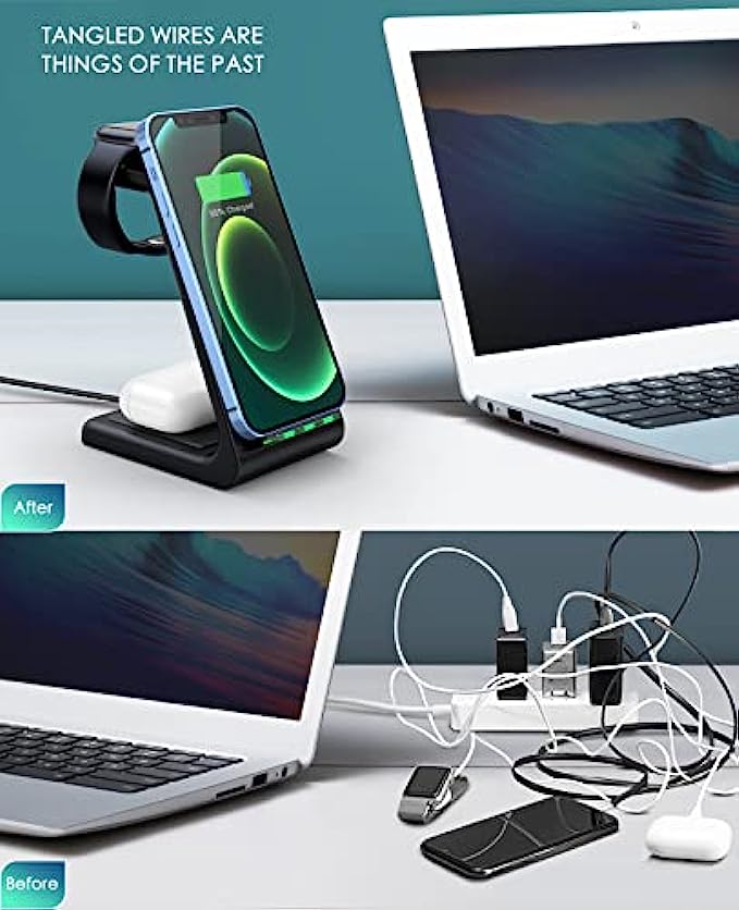 Wireless Charging Station,3 in 1 Fast Charging Station,Wireless Charger Stand for iPhone 13/12/11 Pro Max/X/Xs Max/8/8 Plus, AirPods 3/2/pro, iWatch Series 7/6/5/SE/4/3/2, and Samsung Phones