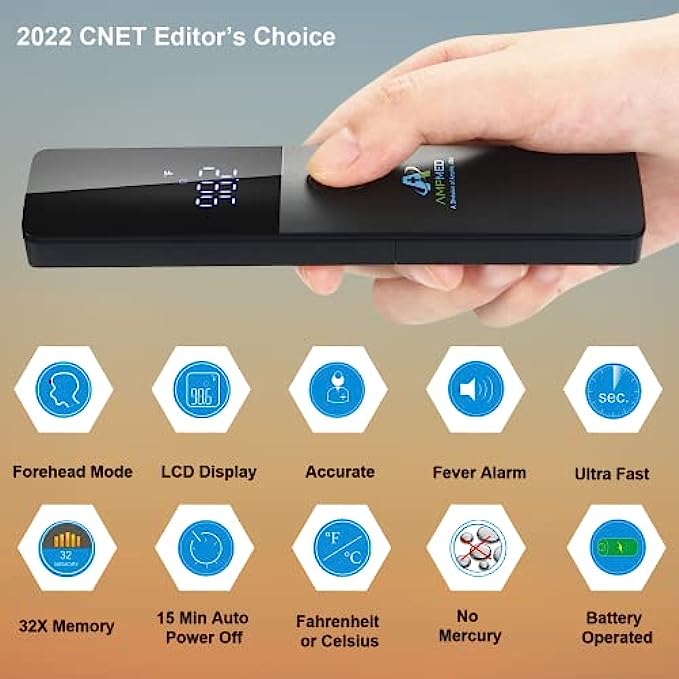 • FAST + ACCURATE: Large LED screen displays digital readings; Audible fever alarm sounds at temperatures greater than 100.4° F