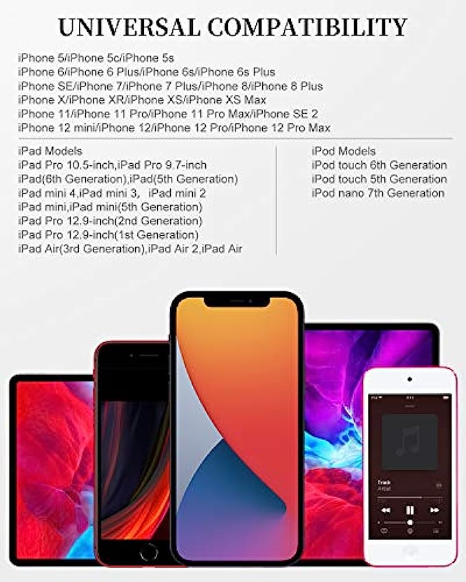 • Perfect comptibility - Uzento iPhone lightning cables compatible with iPhone 12/12 mini/12Pro/12Pro Max/11/11Pro/11Pro Max/SE2/XS/XS Max/XR/X/8Plus/8/7Plus/7/6s Plus/6s/6 Plus/6/5s/5c,ipod and iPad