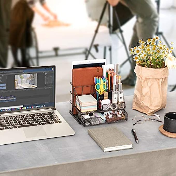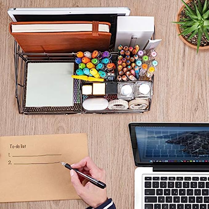 • PREMIUM CRAFTSMANSHIP: ARCOBIS mesh desktop organizer is made of high-quality metal with a durable rust-resistant coating. The rounded edges give your workspace a more refined look and ensure its safety. The combination of wire mesh and black, with enhanced metal rims and stylish appearance is what makes your desk stand out!