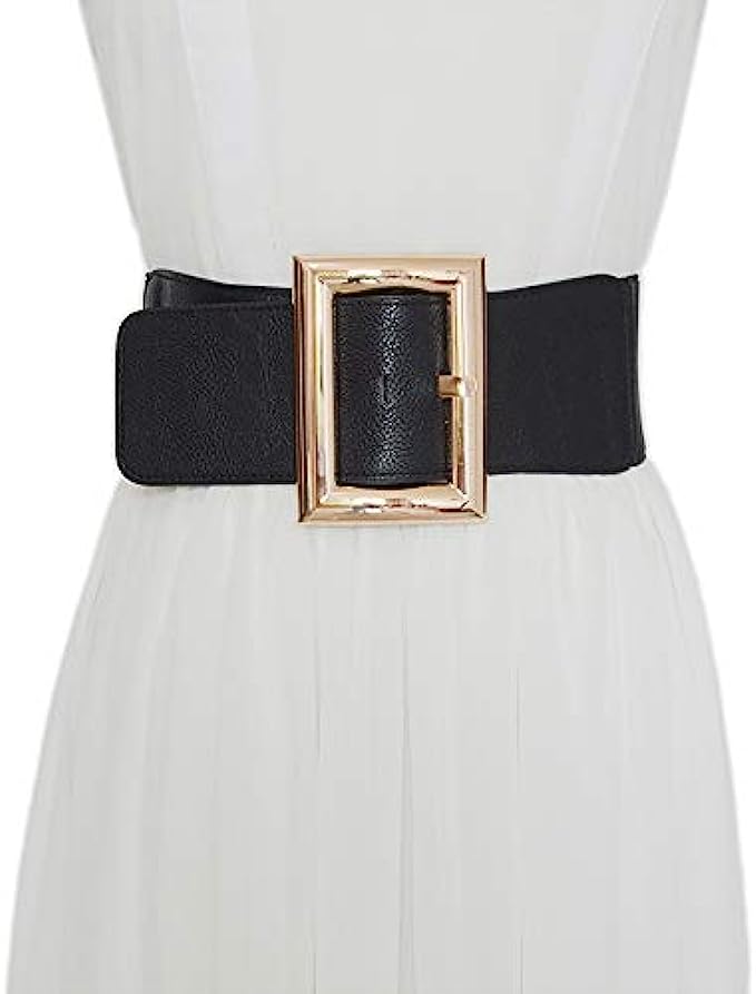 Ayliss Women Wide Elastic Dress Belt Stretch Waist Belt Vintage Fashion Cinch Belt Buckle Retro PU Leather Waistband Cosplay