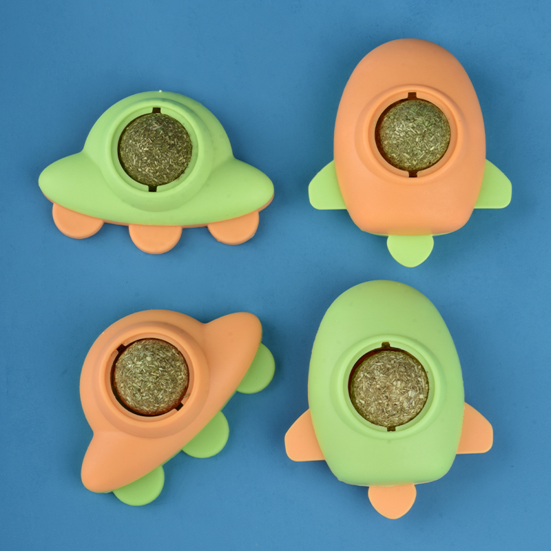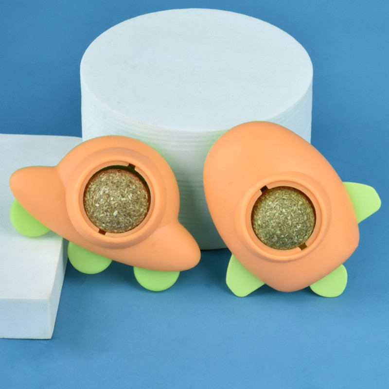 Catnip Ball Cat Airplane Toy Self-healing Boredom Relieving Stick Wall Teasing Cat UFO Toy