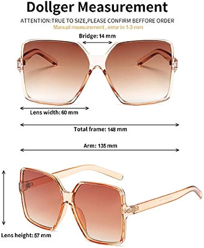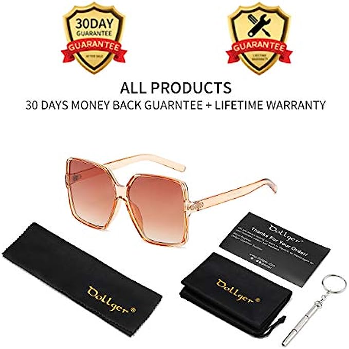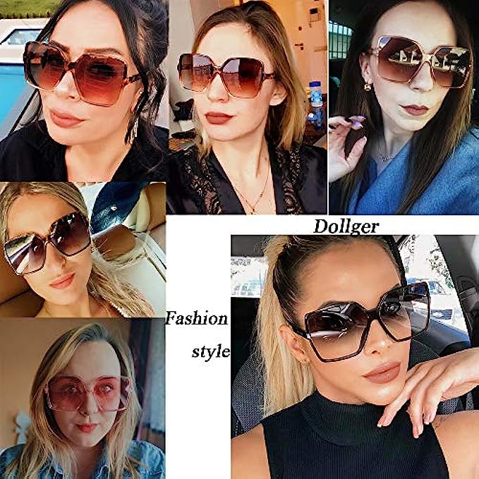 Dollger Oversized Square Sunglasses for Women Big Large Wide Fashion Shades for Men 100% UV Protection Unisex