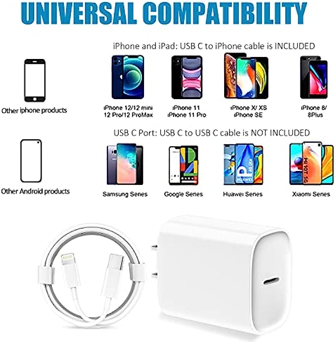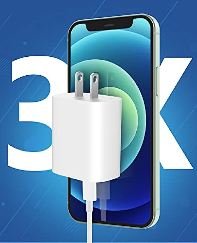 • 【3X Fast Charger iPhone】20W USB C iPhone fast charger with 10ft USB C to lightning cord, PD 3.0 quickly charge USB C port provides 3x faster charging speed than original 5W iphone chargers do. It can charge iPhone 13, iPhone 12 up to 50% in just 30 minutes which saves more time for you.