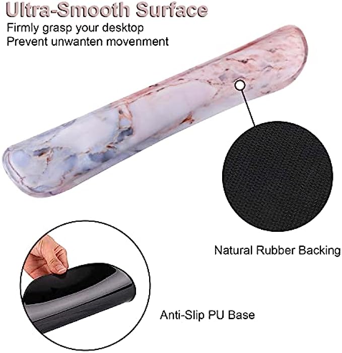 Anti-Slip Base: The bottom of the keyboard wrist rest using anti-skid natural rubber material, and the mouse pad adopts PU base, which will strongly grasp the desk so that you will never be disturbed by the accident move of your mouse, you can concentrate your minds on the work or enjoy stable mouse operation at work or in game. Edges has been reinforced to prevent deformation and damage to guarantee the longer hours of use.