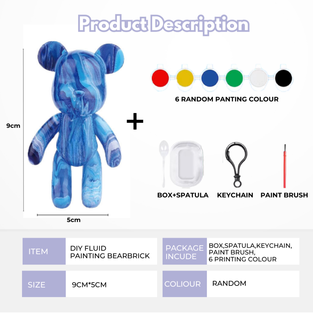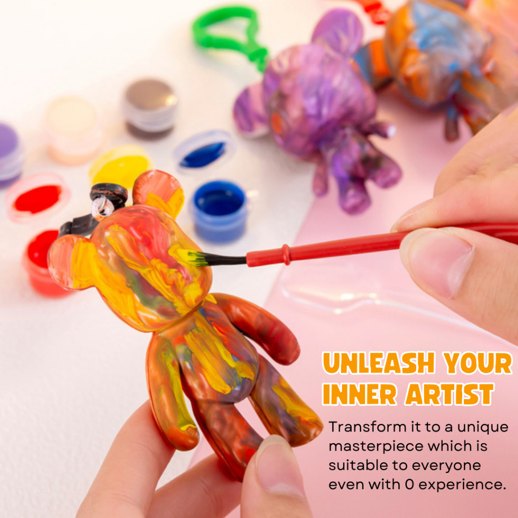 mixshop DIY Fluid Bearbrick Keychain Set Party Gift Children Toys (6 Colors of Painting Set)