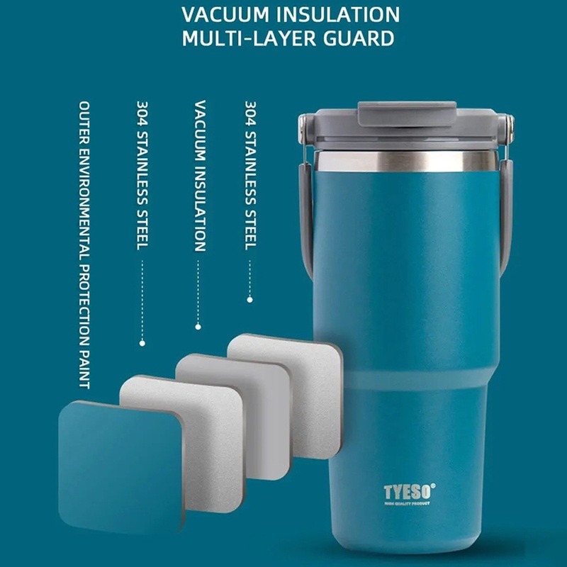 Original Tyeso Tumbler With Handle 600/750/900/1200ml Stainless Steel Double Layer Insulated Thermos Flask Water Bottle