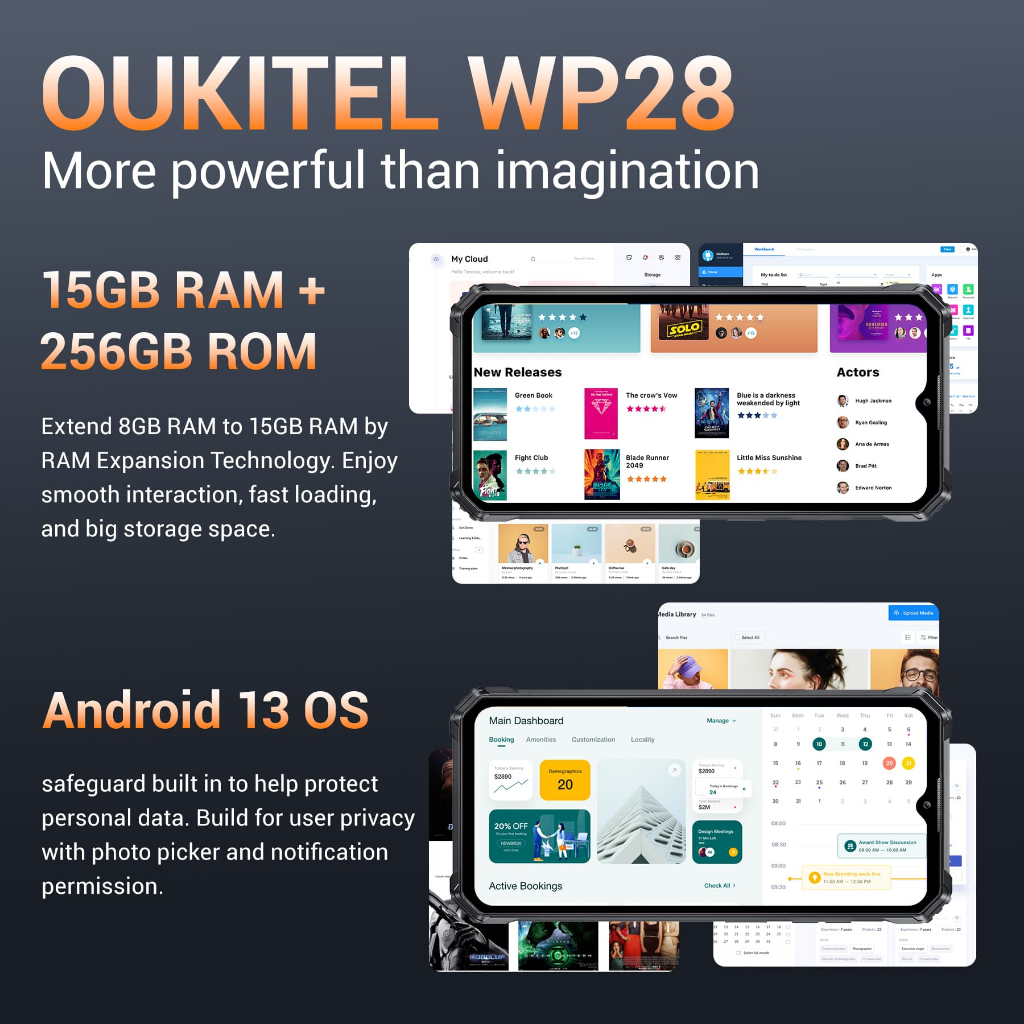 Oukitel WP28 Rugged Smartphone 6.52‘' HD+ 10600mAh 15GB+256GB Android13 Mobile Phone 48MP Camera Cell Phone