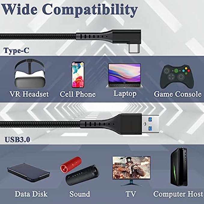 【Compatible with Oculus Quest 2】Our VR Oculus Link Cable connects Oculus Quest 2 to a gaming PC so that you can play all Oculus Rift apps and Steam VR games.Our USB C cable also can compatible with usb 3.0/3.1 gen1.