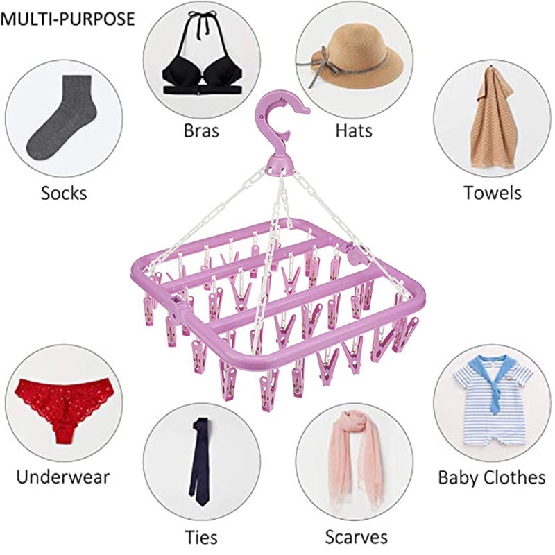 【Ready Stock】SPOETRY 32 Clips Folding Clothes Dryer Hanger 2-Way No-Slant Foldable Clothing Pegs Hanger Drying Rack