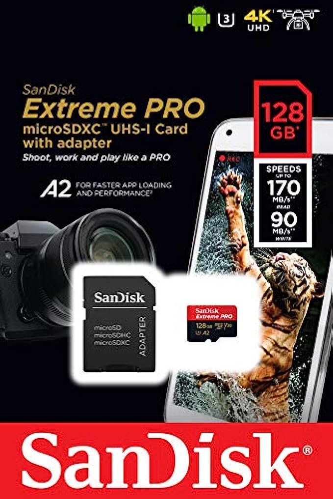 SanDisk Extreme Pro SDXC UHS-I U3 A2 V30 128GB + Adapter, SDSQXCY-128G-GN6MA