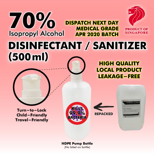 Sanitizer / Surface Disinfectant 70% Isopropyl Alcohol Based (Hospital grade) 5L 1L 500ML