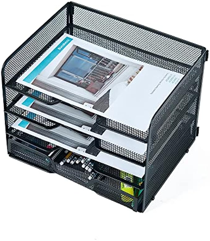 【Multifunctional Design】: The desk file organizer comes with a drawer tray. The drawer trays are used to store office stationery such as pens, pencils, glue sticks, staplers, etc.