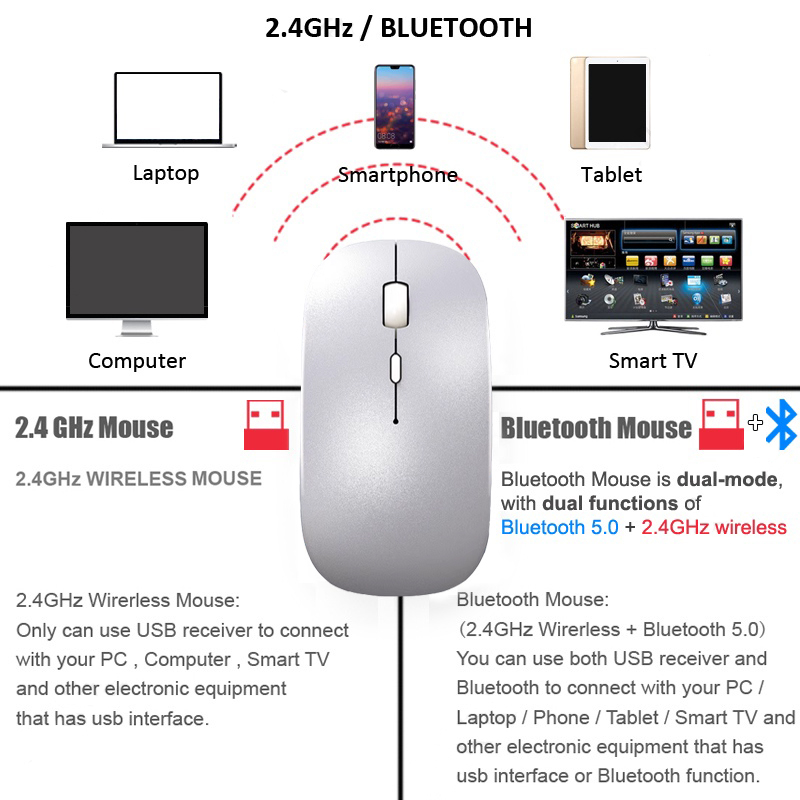Value For Money:?? Performance:?? I bought 2 pieces black and gray LED wireless mouse on October 6th for just $5.50 each. It arrived incredibly fast on October 8th. The speedy delivery exceeded my expectations. Black color mouse has a micro USB connection and Gray color mouse has Type C USB connectio and are rechargeable. This is very convenient—no more disposable batteries. It's comfortable to use and highly responsive. The LED lighting adds a sleek touch to my desk setup. Overall, it's a nice, functional mouse that offers great value for its price. If you're looking for an affordable and reliable wireless mouse, I highly recommend this one.