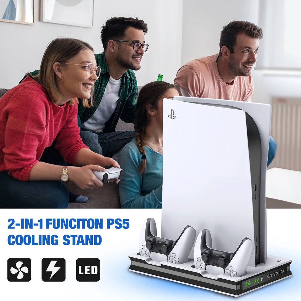 【SG Stock】PS5 Stand With 2 Dual Fast Cooling Fans Controller Charging Station with 3 Extra USB Ports Stand