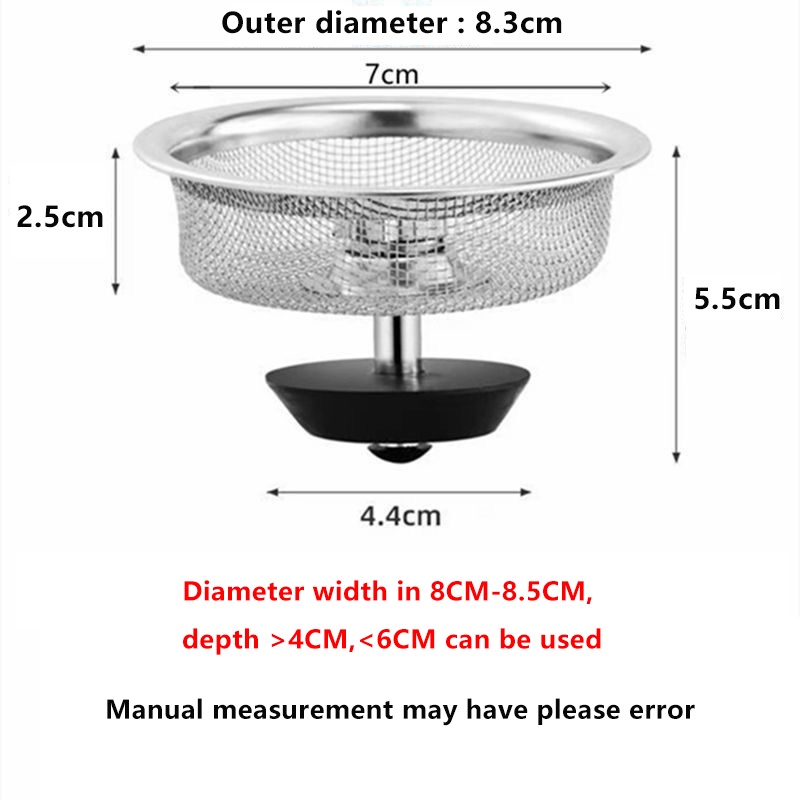 Stainless Steel Sink Filter with Plug Sink Strainer Drainer Drain Filter Kitchen Strainer
