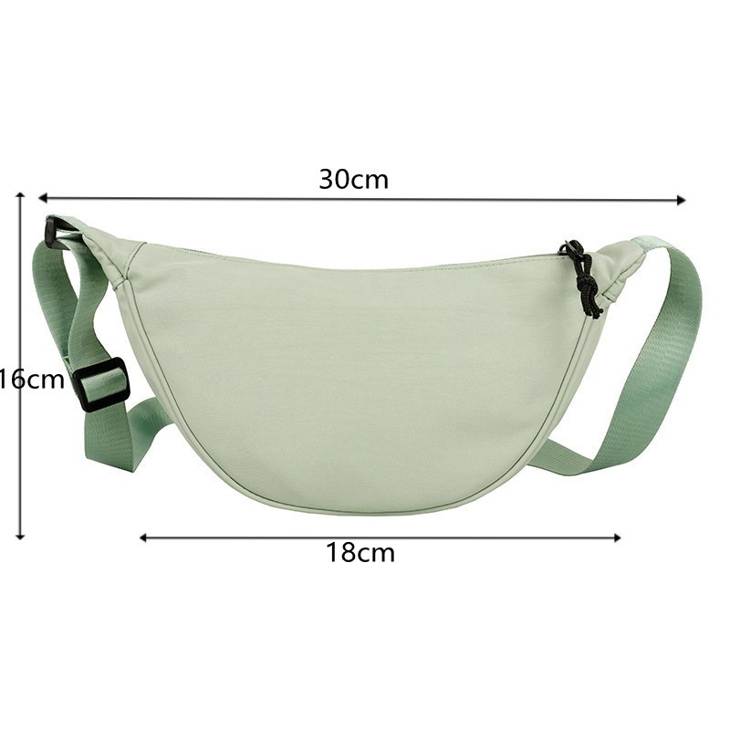Women Cute Chest Bag Large Capacity Solid Color Travel Crossbody Bag Half Moon Nylon Daily Casual Shoulder Bag