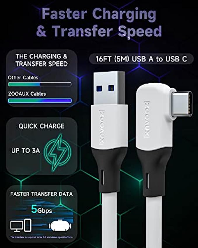 ZOOAUX Link Cable 16 FT Compatible with Meta/Oculus Quest 2 Accessories and PC/Steam VR, Fast Charing & PC Data Transfer USB C 3.2 Gen1 Cable for VR Headset and Gaming PC